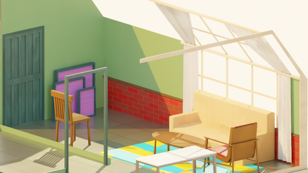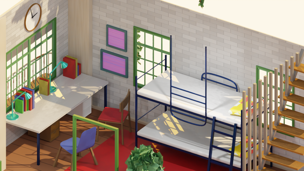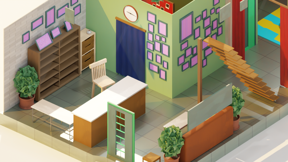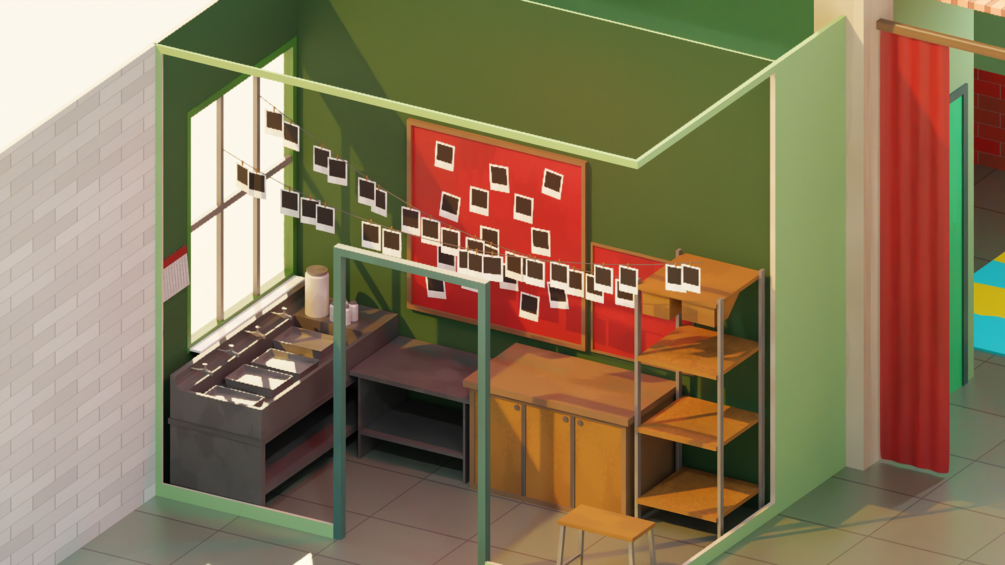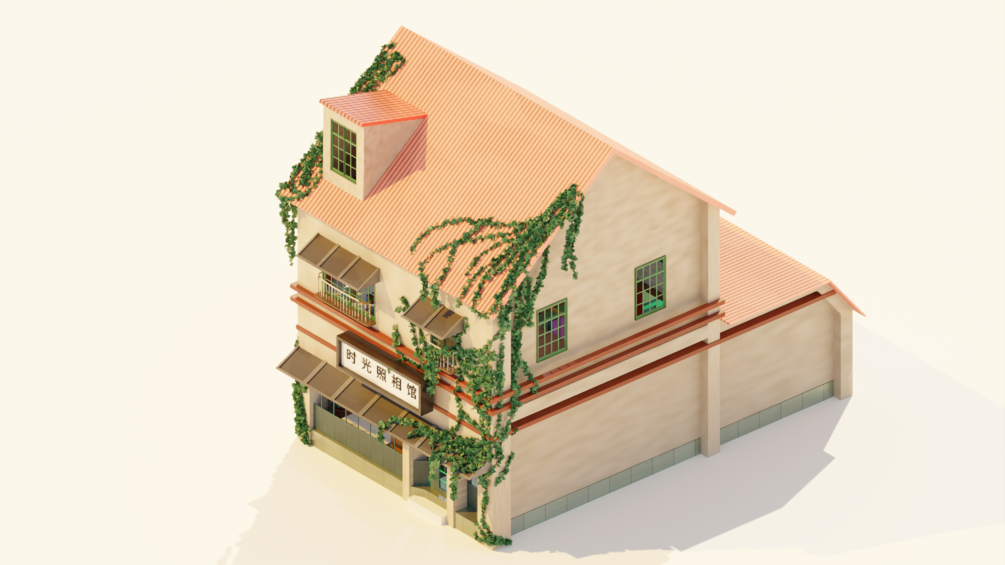 A 3D recreation of the Time Photo Studio from Link Click with a fully decorated and furnished interior. The model includes the front desk, lounging area, photo developing room and bedroom of Lu Guang and Cheng Xiaoshi.